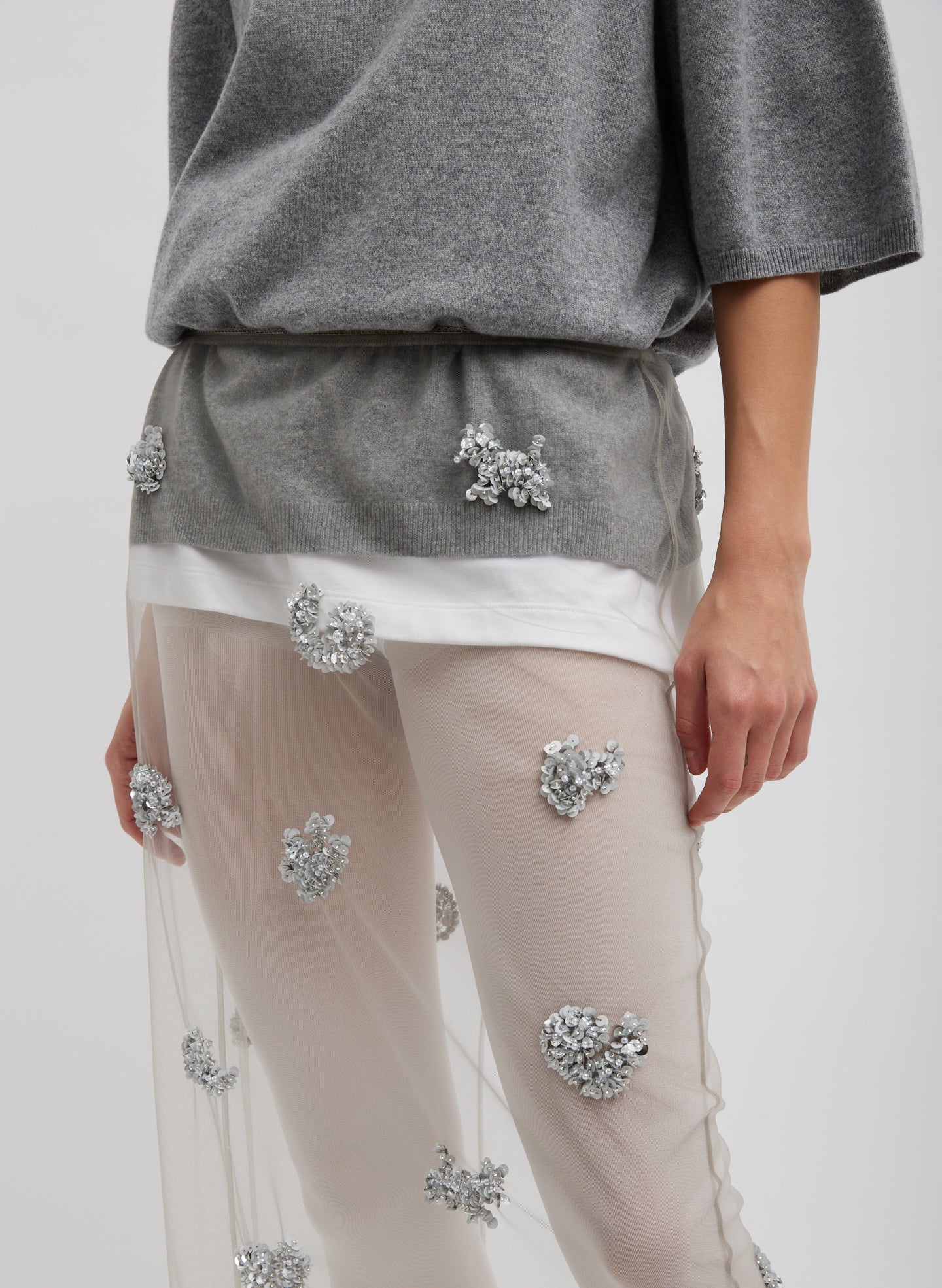 The Artemis Beading Slip Skirt, crafted from delicate Japanese nylon tulle, is the season's ultimate HTH (Have to Have). Available in black and silver, it pairs effortlessly with the Eco Poplin Easy Tuxedo Shirt for a bold twist on a classic combo, or with the Washable Cashmere Oversized Easy T-Shirt for an unparalleled at-home entertaining look.