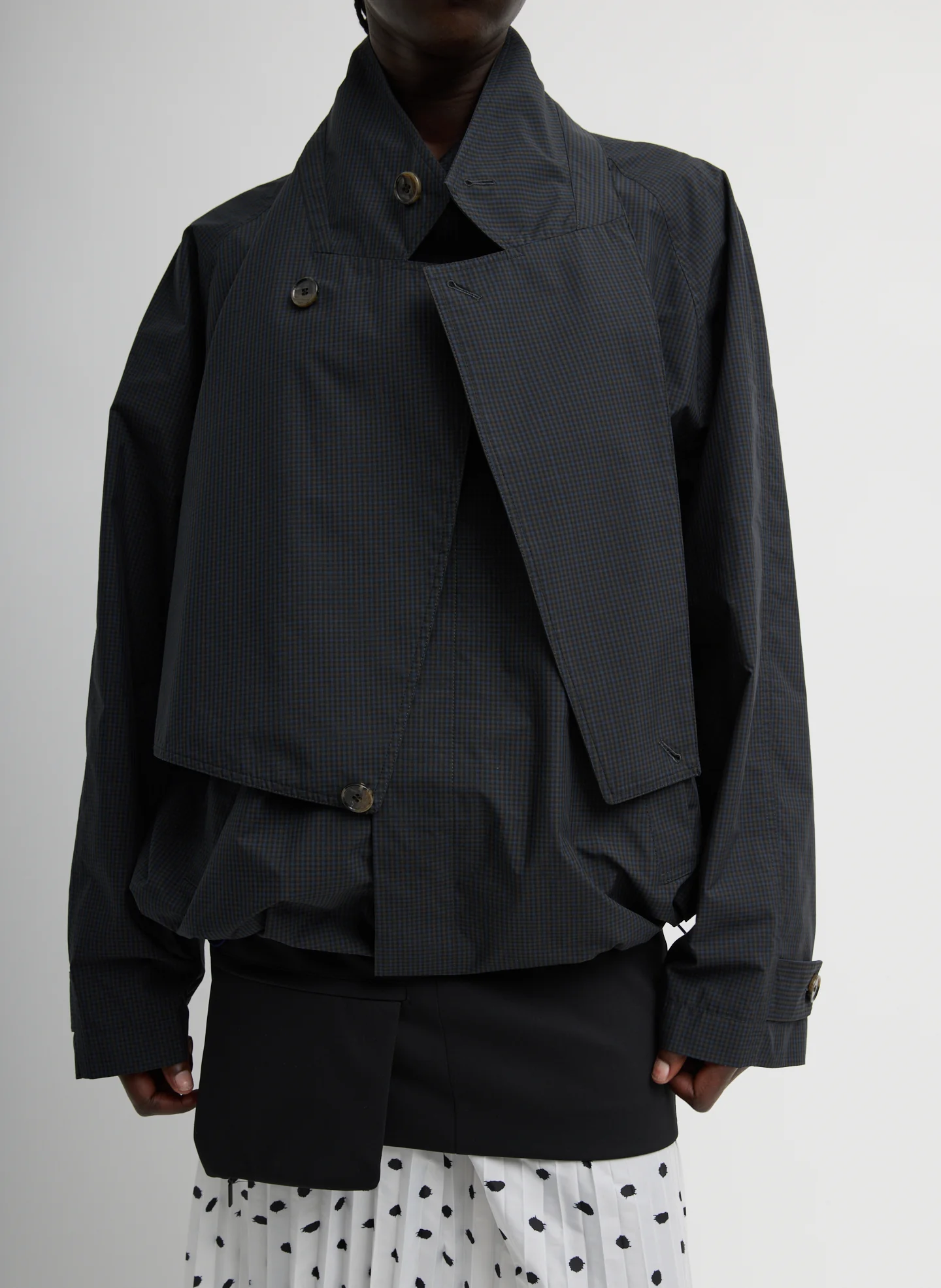 The Charles Menswear Trench Anorak blends traditional tailoring with modern functionality. Designed with an adjustable elastic waistband and convertible lapel flaps, this piece offers multiple styling options to suit your mood and proportion play. Crafted from a structured yet fluid fabric that drapes effortlessly, it delivers the perfect balance of polish and ease. Layer it over the coordinating Hooded Dickie for streamlined warmth or wear it solo as a lightweight outer layer that transitions seamlessly through the seasons.