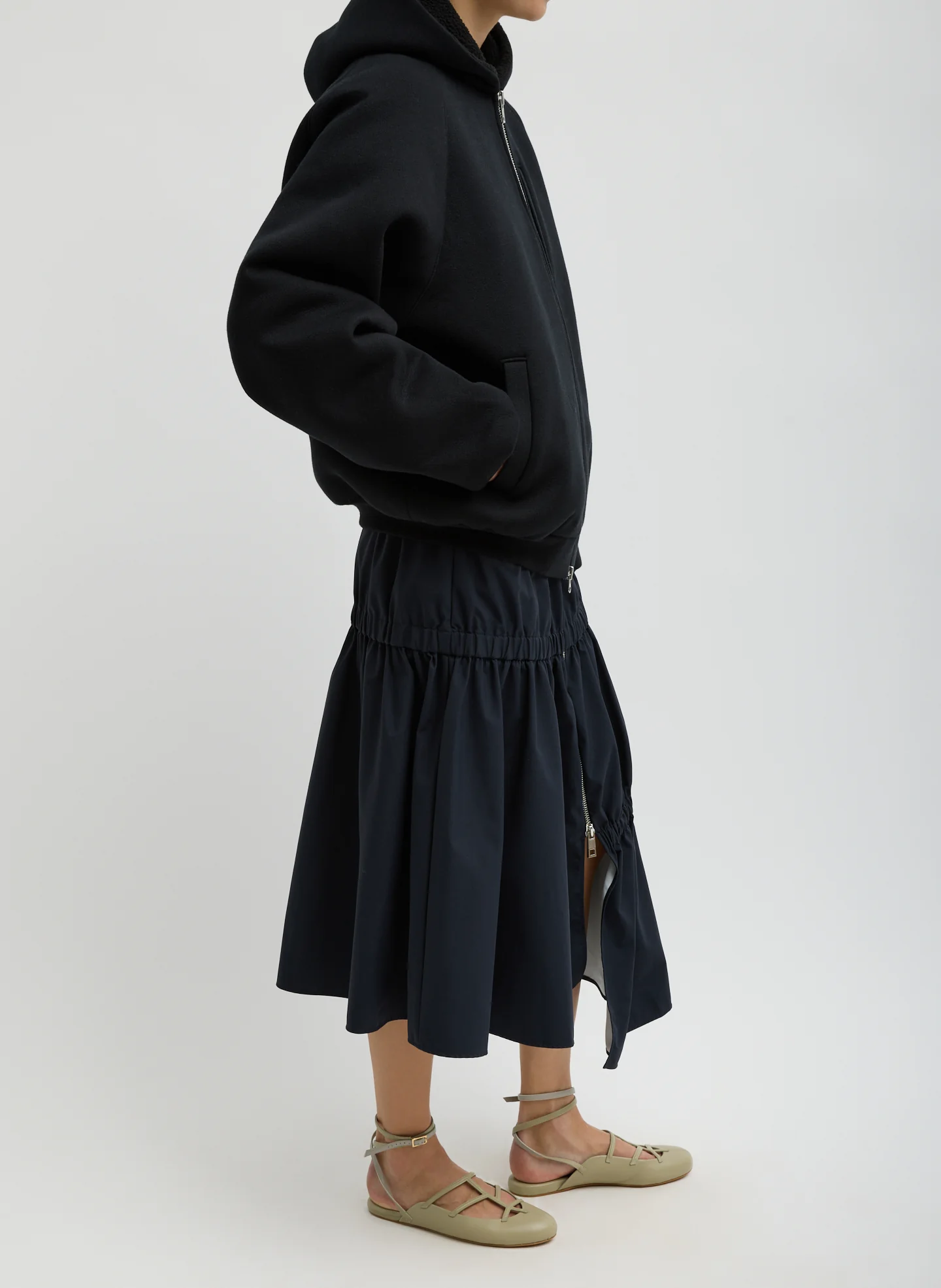 Crafted from a special Japanese tech terry knitted with thicker yarn for a clean, compact look, the Compact Tech French Terry Zip-Up Hoodie redefines modern outerwear. Designed with a two-way front zipper for versatile styling and functional front pockets, this piece blends technical precision with everyday comfort. The interior hood and back are lined in plush sherpa for added warmth, while the quilted sleeves bring subtle texture and structure. Available in Black and Grey, this cozy yet refined jacket is the perfect layering piece for cooler seasons—where ease meets intention.
