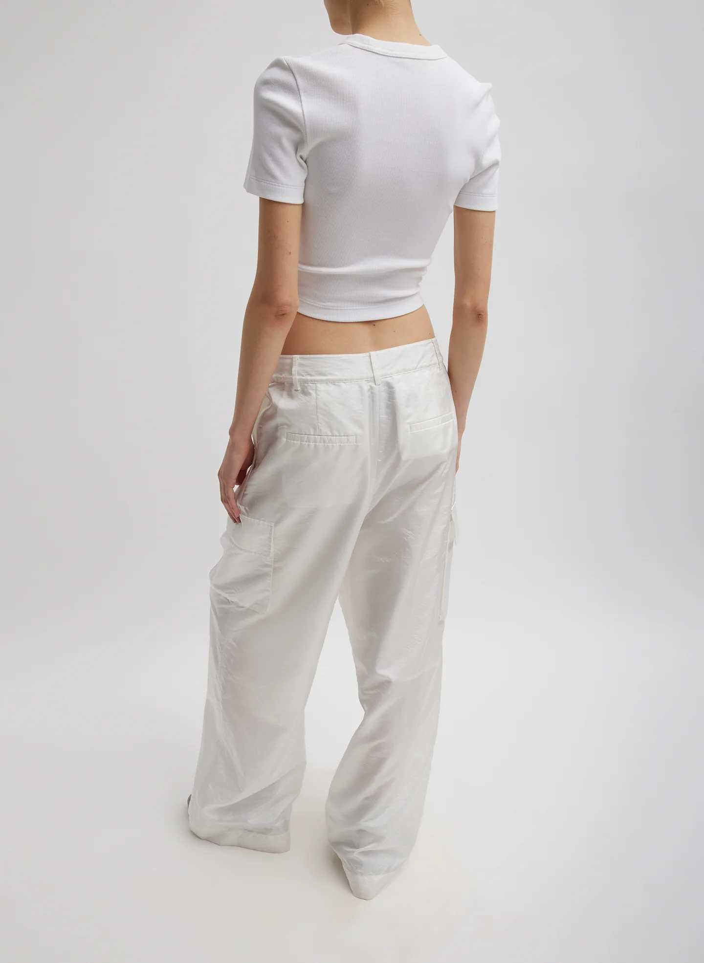 This assortment serves as your WOFs (Without Fails) and are designed to create space in your wardrobe for creativity and experimentation. No matter how extreme your closet may become, these pieces serve as the grounding element that ties everything together. As part of the Spring 2020 show, the crispy nylon pleated cargo pant quickly became an outfit staple for the creative pragmatist. A similar shape to the classic Stella pant, this nylon version has a relaxed cargo pocket, but maintains the same level of elevated functionality. Made in a nylon blend, these pants possess the relaxed elegance needed to transition from the grocery store, to the office, to evening with the right shoes. This is the ultimate PDW for customers who are continuing to build out their ideal wardrobe.
