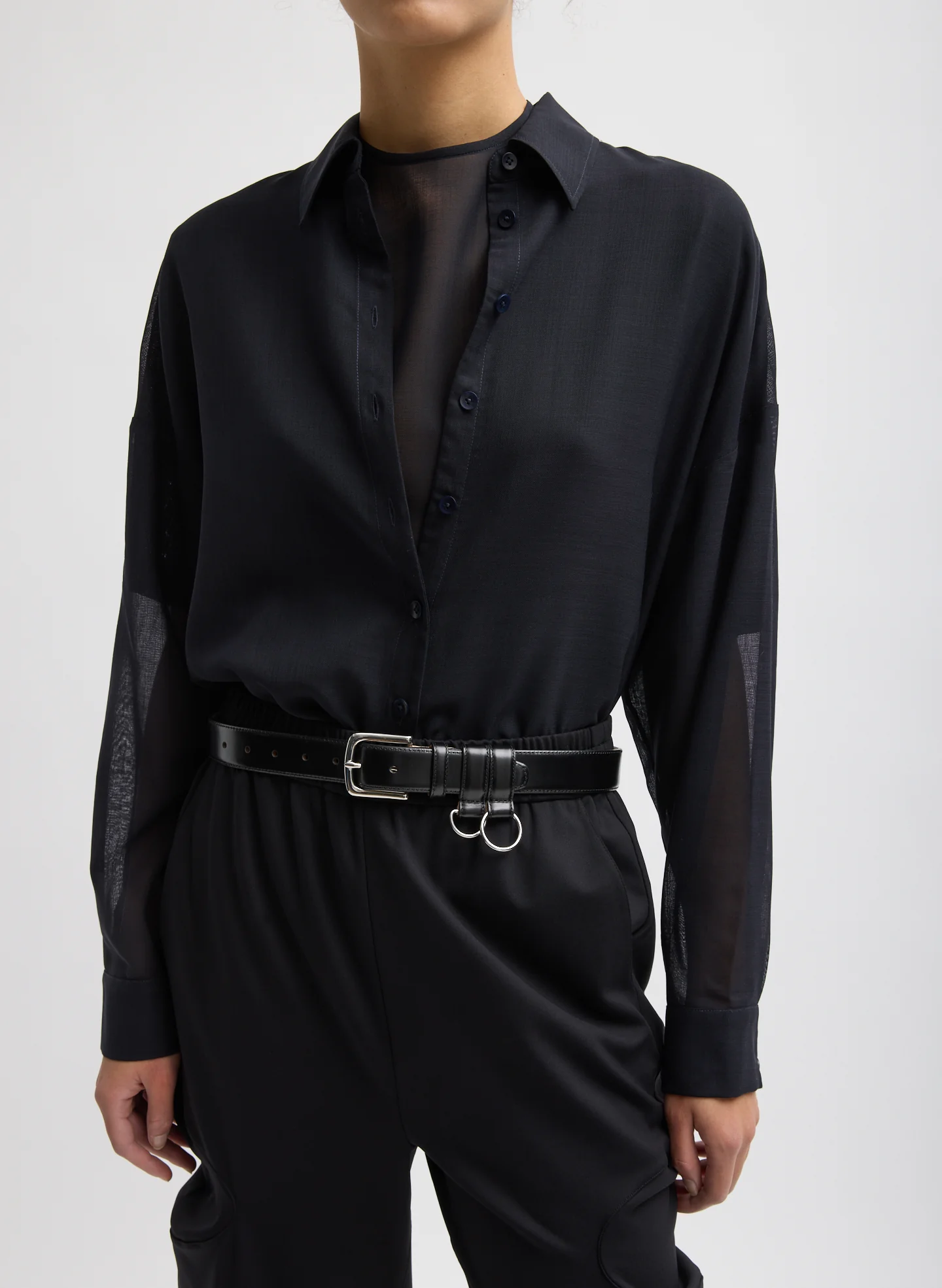 Crafted from a delicate sheer wool gauze, this oversized shirt is the perfect layering piece with a soft, airy feel and subtle texture. Designed with an easy, relaxed silhouette and classic button-front, it brings effortless sophistication to both casual and refined looks. Wear it over the Easy T-Shirt for a layered set or pair back to your trousers or denim styles, this shirt is a seasonless essential that adds dimension and ease to any outfit.