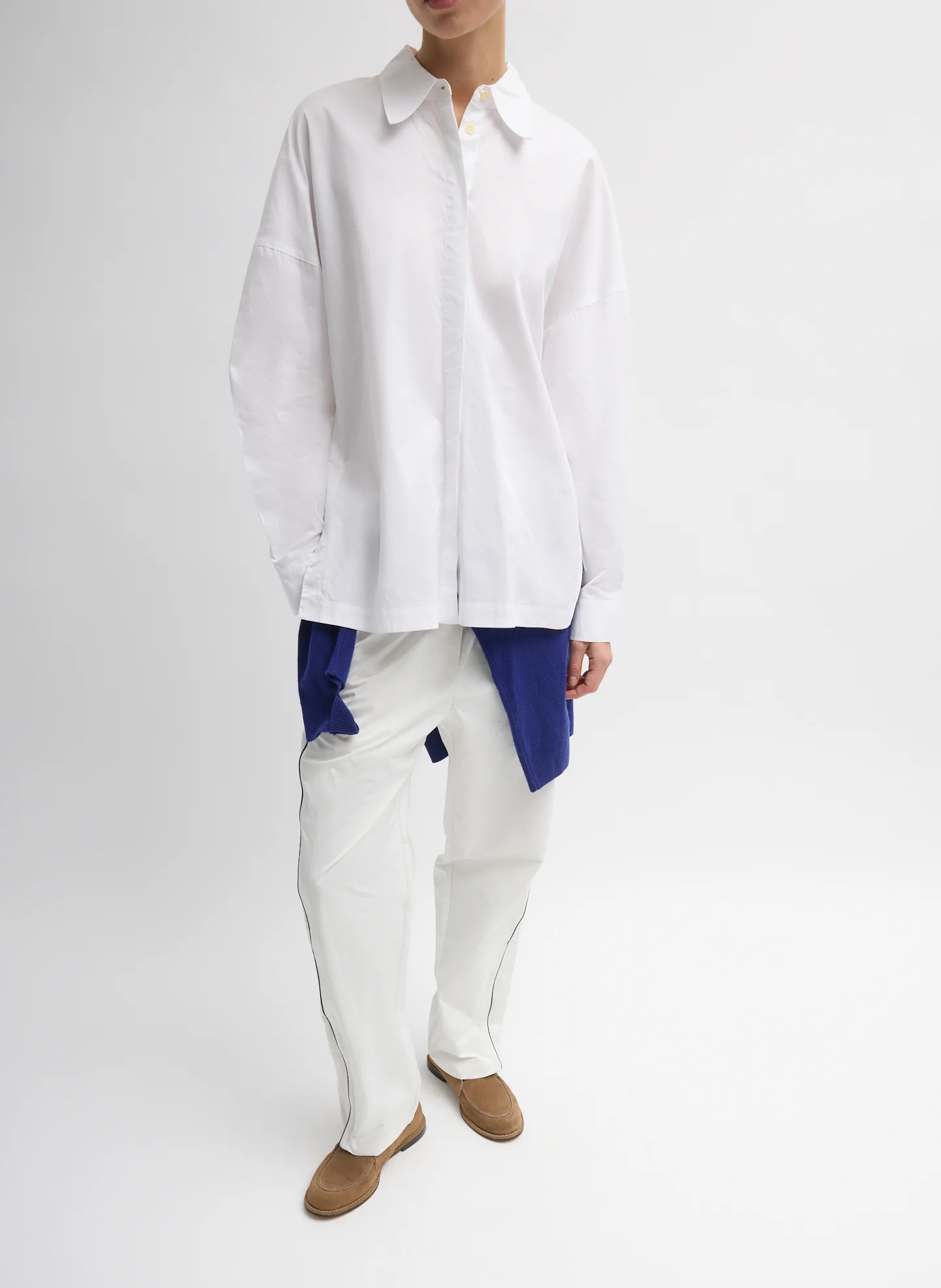 This assortment serves as your WOFs (Without Fails) and are designed to create space in your wardrobe for creativity and experimentation. No matter how extreme your closet may become, these pieces serve as the grounding element that ties everything together. First introduced in 2015 and refined in 2020, the Gabe Oversized Shirt has surpassed the test of time as a wardrobe workhorse for Creative Pragmatists. Crafted in environmentally friendly Peruvian cotton with a luxurious finish, it’s designed for endless styling options. Dial it up with polished accessories with a distinct point of view or tone it down for casual moments with our Granger Slide or Seth Sneaker—the Gabe adapts to any creative need.