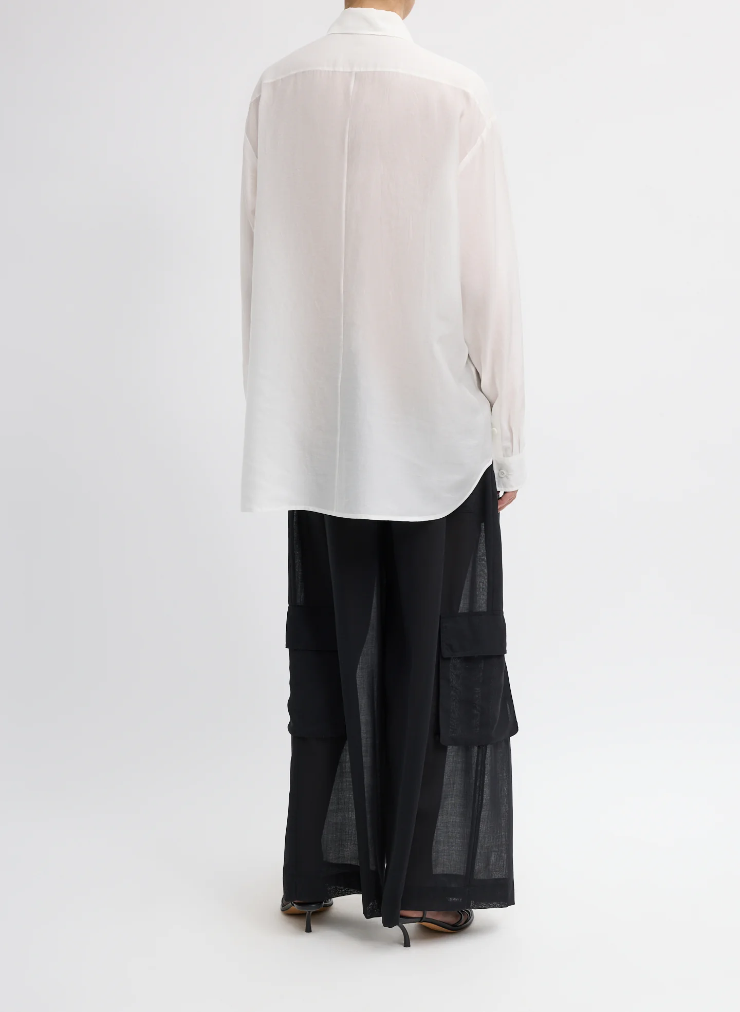 A modern tuxedo shirt through the lens of ease. The Silk Voile Easy Pintucked Shirt is crafted from Italian silk warp with a Tencel blend weft, finished with a washed hand for softness. The relaxed fit and pintucked front bring refinement with nonchalance. Wear loose for undone attitude, tucked for polish, or layered under suiting for contrast. A Ring 1 through 4 piece, it adapts seamlessly.