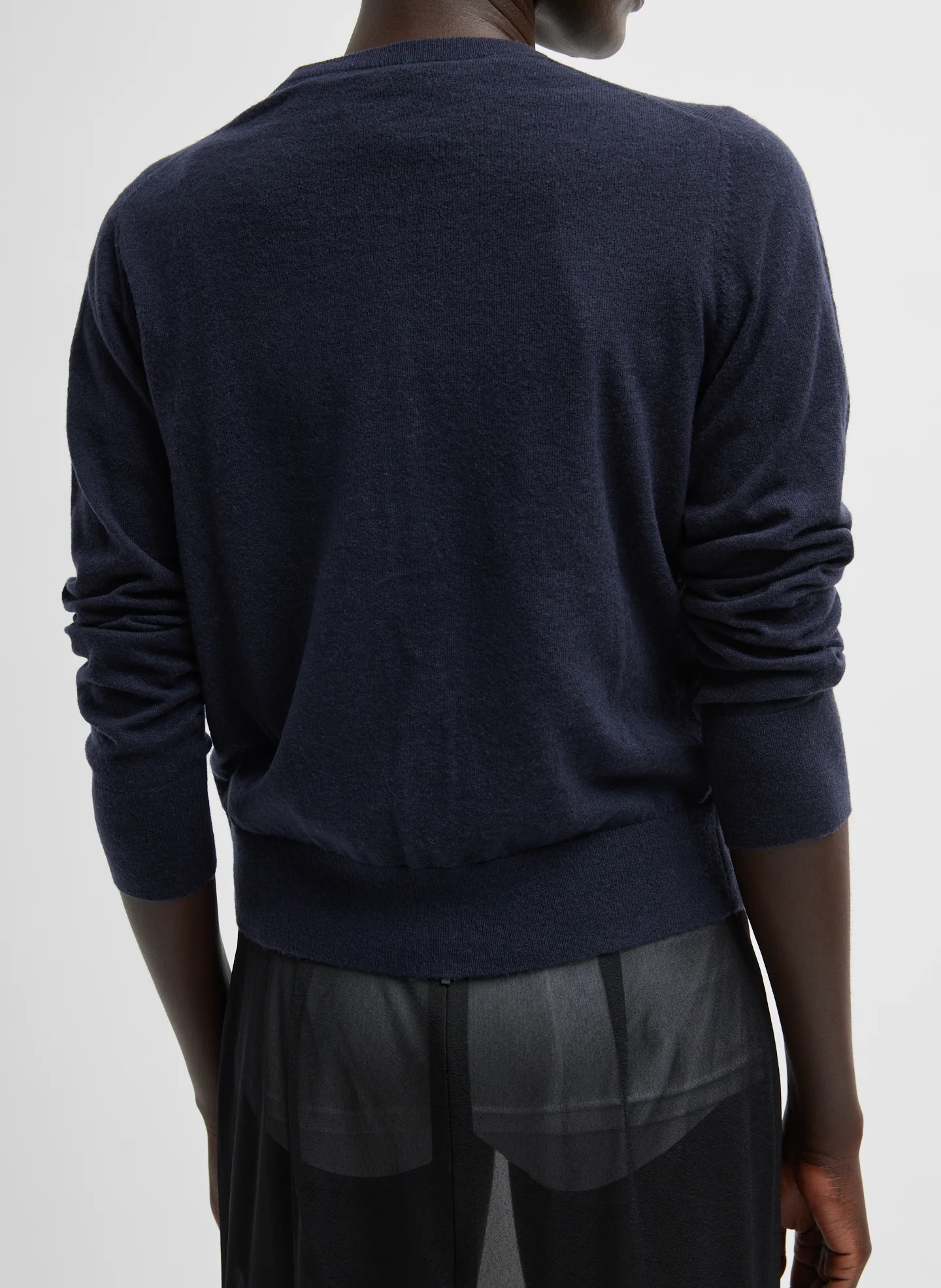 This assortment serves as your WOFs (Without Fails) and are designed to create space in your wardrobe for creativity and experimentation. No matter how extreme your closet may become, these pieces serve as the grounding element that ties everything together. The Skinlike Mercerized Wool Shrunken Cardigan combines luxurious wool with a modern, shrunken fit. Multi-hyphenate by design, this tenured Fundamental returns in Ring 2 Navy for Spring 2025. Layer it over the matching vest or style it with denim for a pragmatic yet polished look