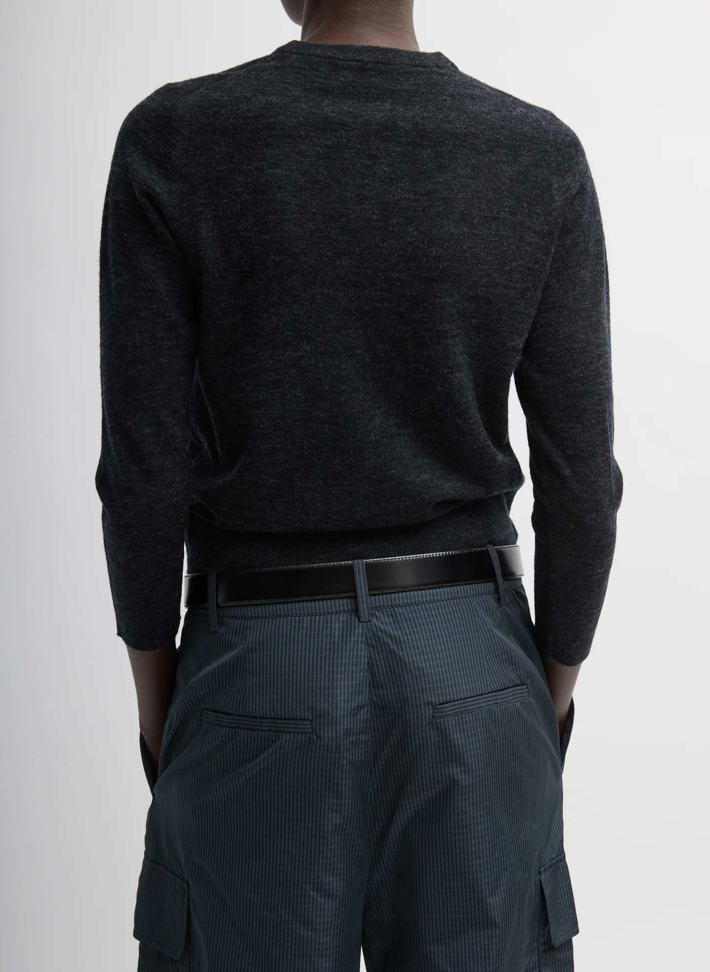 This assortment serves as your WOFs (Without Fails) and are designed to create space in your wardrobe for creativity and experimentation. No matter how extreme your closet may become, these pieces serve as the grounding element that ties everything together. A new V-neck version of a tenured Fundamental, this shrunken-fit sweater is crafted from our skinlike mercerized wool—smooth, breathable, and warm without weight. Style solo or layer under the matching cardigan for a streamlined, tonal set. Now available in Navy, Charcoal, and Ring 4 Red.
