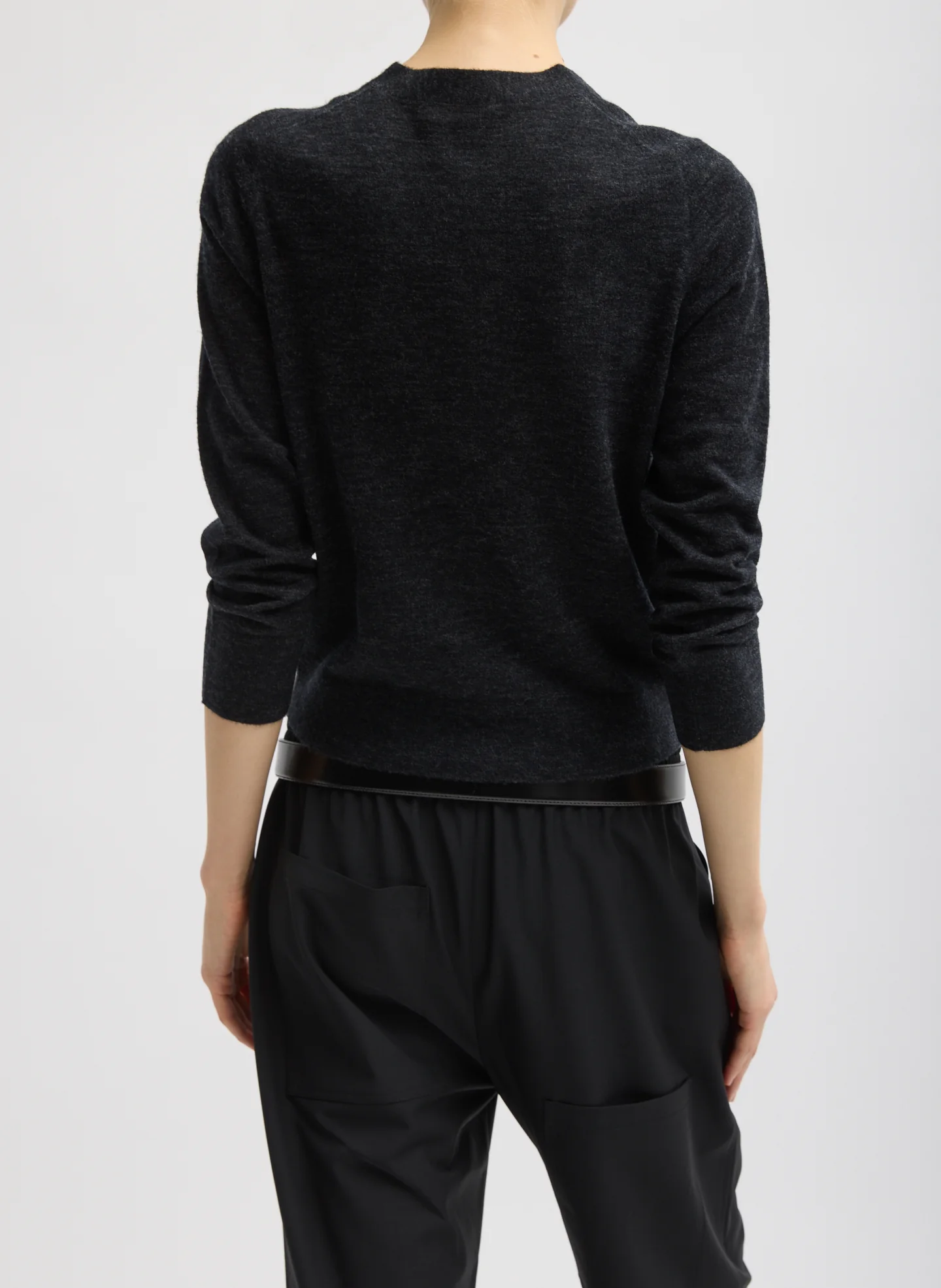 This assortment serves as your WOFs (Without Fails) and are designed to create space in your wardrobe for creativity and experimentation. No matter how extreme your closet may become, these pieces serve as the grounding element that ties everything together. The V-neck Shrunken Cardigan is the layering piece you’ll reach for across all twelve months. In a refined mercerized wool with just enough polish, it’s compact in fit but generous in styling potential. Wear over the coordinating sweater, toss over a dress, or pair with denim for modern balance.