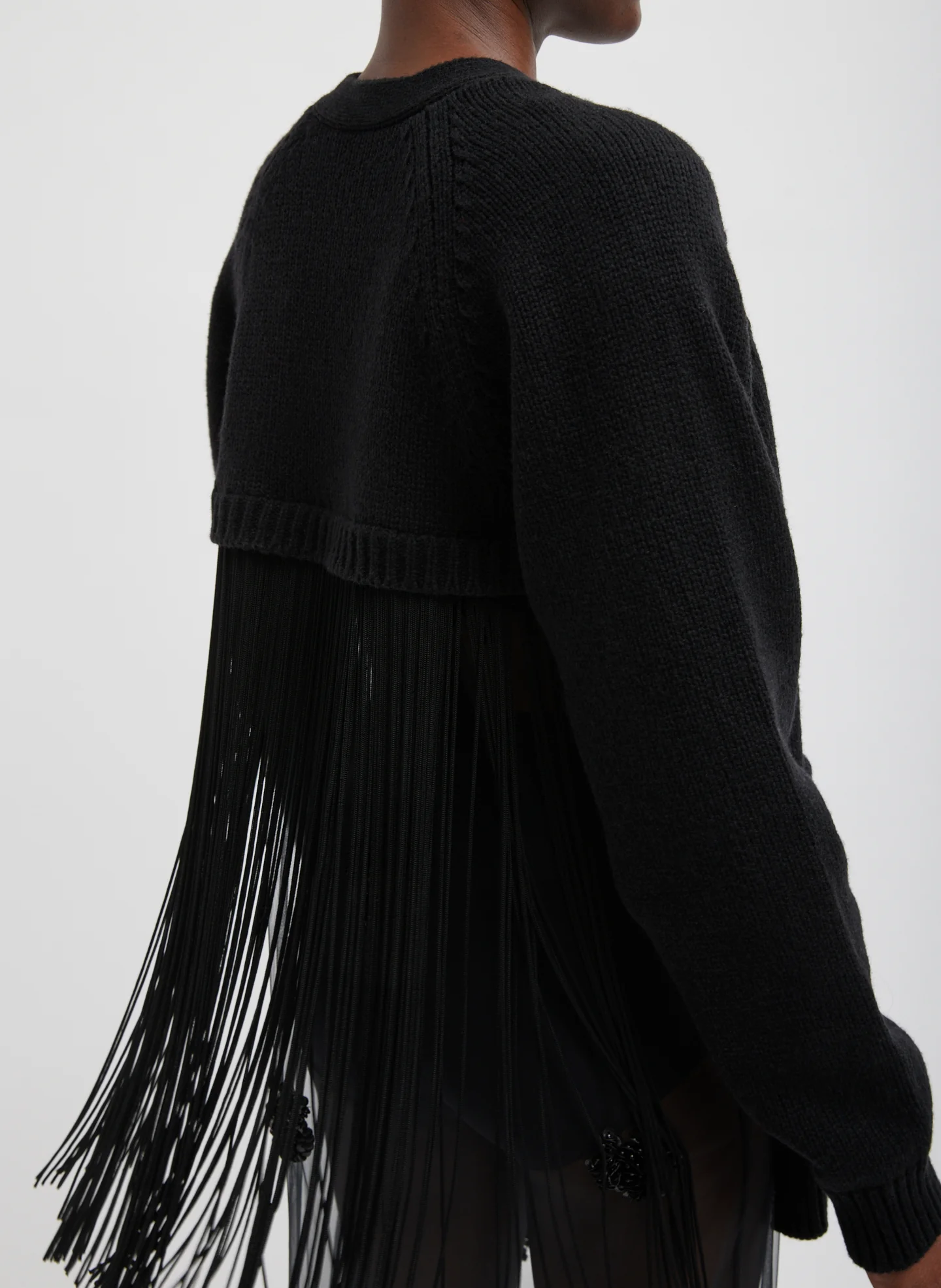 As Creative Pragmatists, we embrace LRP (Long Range Planning) when adding new pieces to our wardrobes, seeking multi-functional items for maximum wearability. The Soft Sweater Fringed Half Cardigan is the epitome of this approach—bridging the gap between the highly pragmatic and the highly creative. Crafted from 100% ultra-soft wool and featuring fringe detailing at the back, this sweater seamlessly transitions from a statement skirt and heels to your favorite jeans.