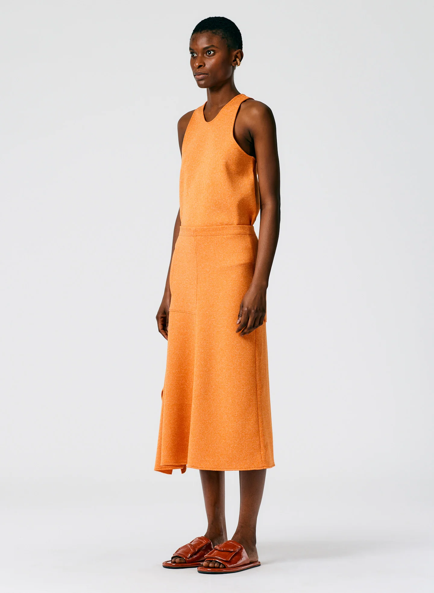 Our Speckled Knit Asymmetric Flare Skirt is in an Italian multicolored knit from Prefall 2020. This fabrication is the perfect combination of structure and softness. Pair back to the Speckled Knit Tank for an easy, versatile outfit.