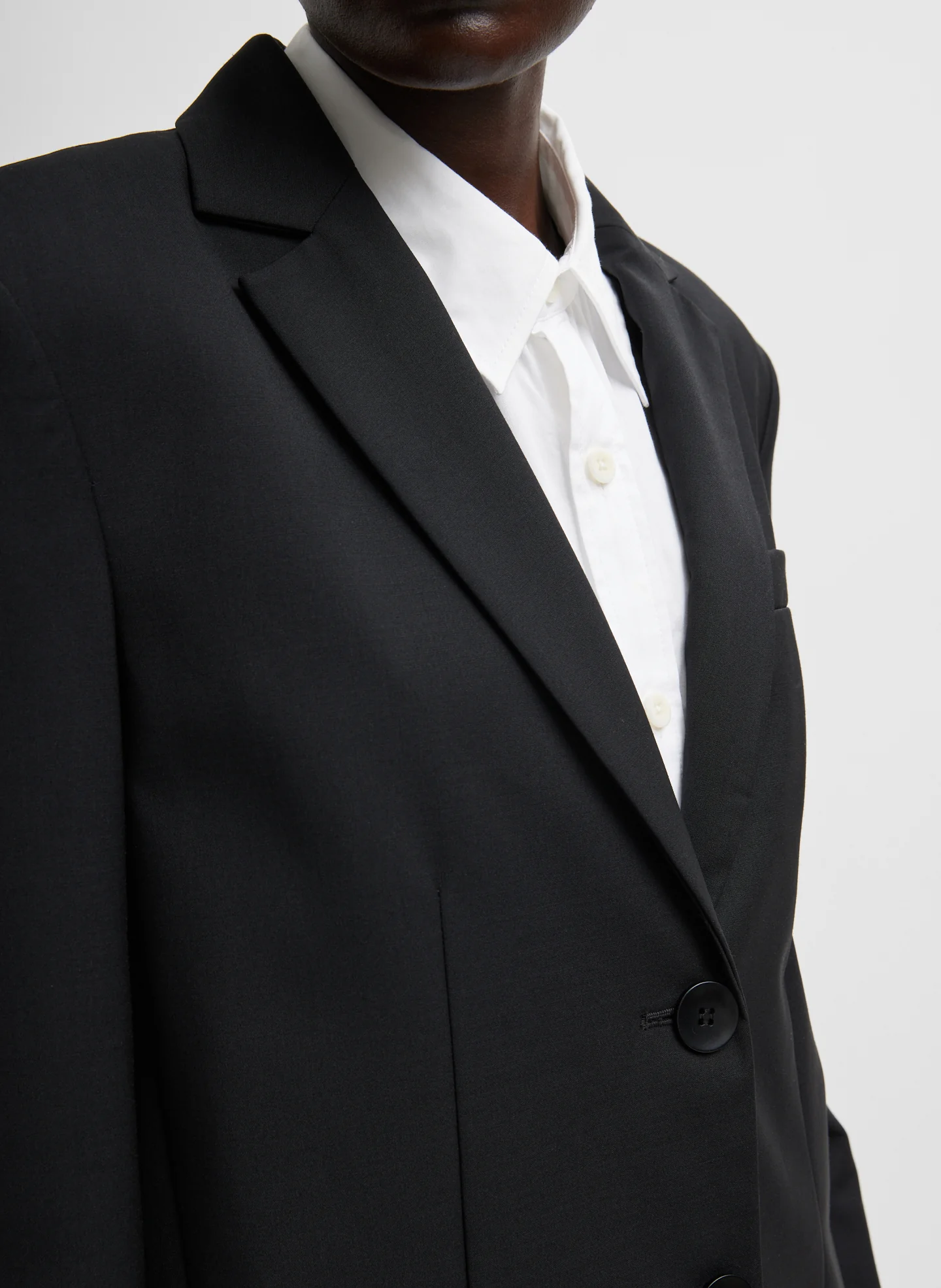 The Tropical Wool Max Blazer is a key foundation for the wardrobe and will quickly become your everyday blazer. Crafted from luxurious tropical wool this three-button silhouette is not a trend and it is here to stay. Featuring a notch lapel with patch pockets this straight fitting blazer will stand the test of time. Chill, yet classic, the relaxed fit modernizes this style, solidifying its CMC status. Easy to pair back to the Tropical Wool Stella pant and Charlie Slim shirting but also easy enough to pair back to your denim for an easy PDW.