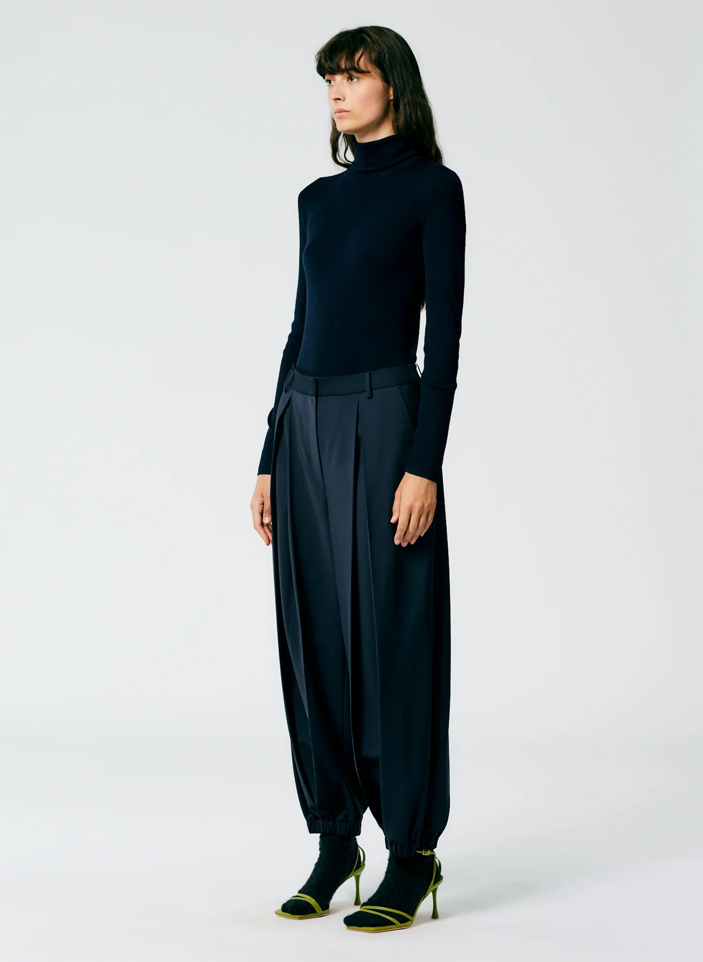 The Tropical Wool Pleated Balloon Pant is a key foundation for the wardrobe and will quickly become a piece you continually reach for in your closet. This pant was created with a wide leg fit that cinches as it reaches the floor, creating the beloved balloon shape. Pair this pant with the Feather Weight Cashmere Oversized Easy T and matching Max blazer for a take on office dressing that is sure to leave you feeling powerful.
